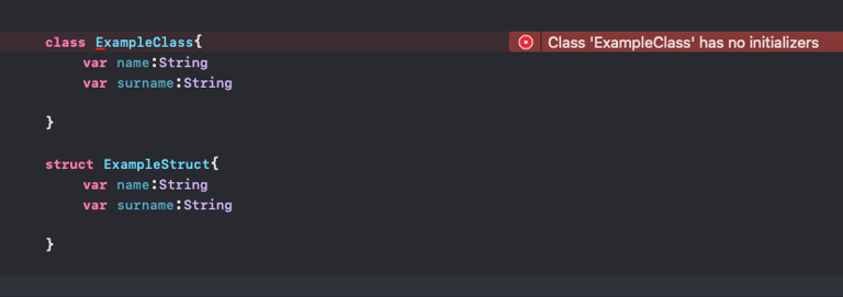 The class structure expects us to create our own init method. Struct does this automatically.